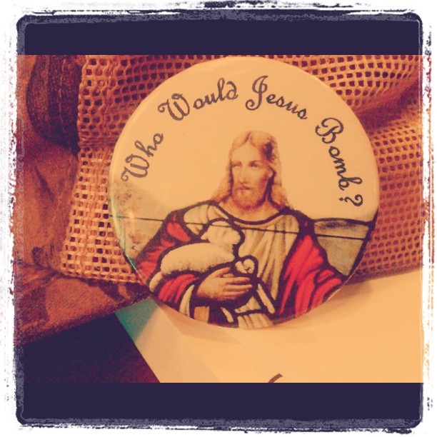 At the theological discussion I go to on Thursdays, there is a kind conspiracy theorist who wears hats with buttons on them. We are an odd, wonderful group. (Taken with Instagram at Panera)
