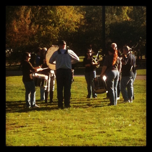 I like living in a city that while sitting in the park, having a conversation about Jesus, a group of bagpipers and drummers can randomly begin to play. (Taken with instagram)