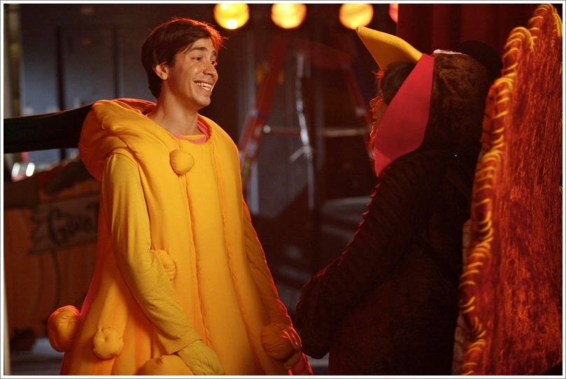 NEW GIRL: Jess (Zooey Deschanel, R) invites her crush Paul (guest star Justin Long, L) to Thanksgiving dinner in the "Thanksgiving" episode of NEW GIRL airing Tuesday, Nov. 15 (9:01-9:31 PM ET/PT) on FOX. ©2011 Fox Broadcasting Co. Cr: Greg Gayne/FOX