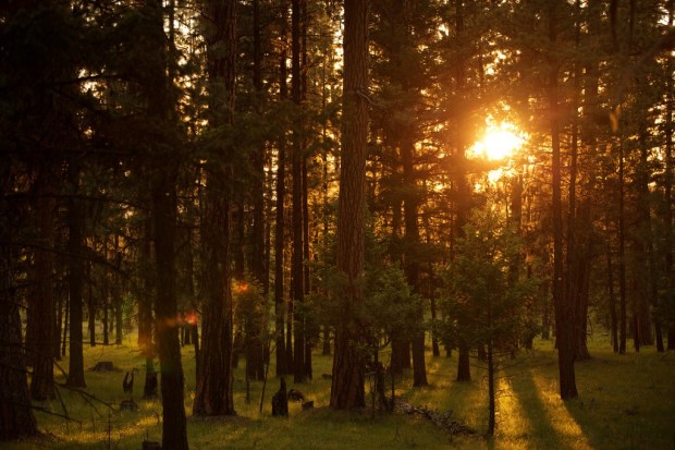 Orange Sun Through Green Holland Lake Woods (by Tyler Knott)